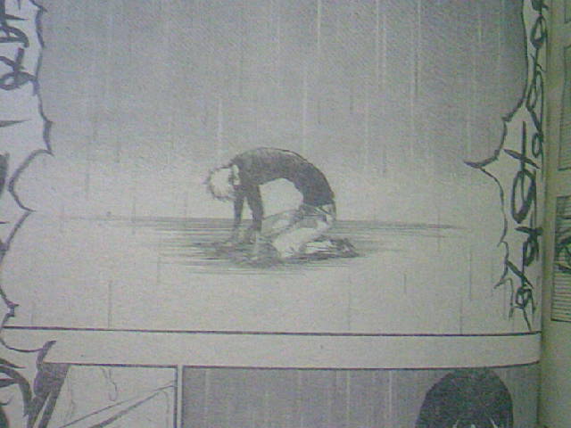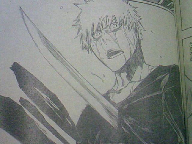 卍解状態の青年らしい顔つき、皺を寄せた表情、具象体斬月の黒コートに似た独自の死覇装。