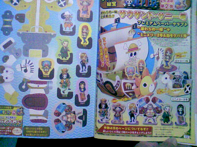 先週の少年ジャンプ9号 サウザンド・サニー号に引き続いて、ペーパークラフト第二弾は、ミニメリーと白モクバ。